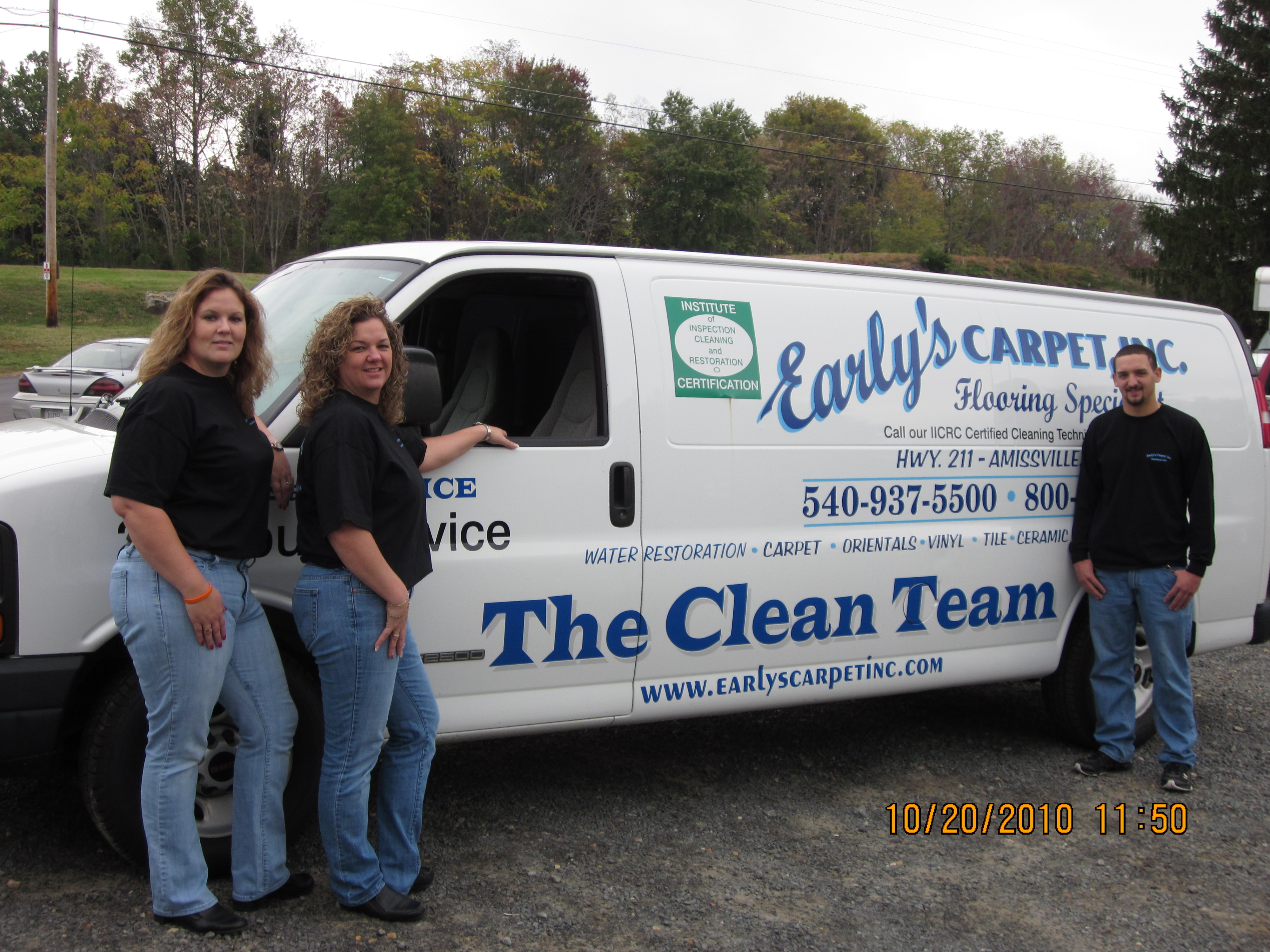 | Early's Carpet is proud to offer what few retailers can. Our "Clean Team" is certified to help maintain your warranties and the life of your purchases by cleaning them, using manufacturer recommended methods. Before We Begin... Before our technicians begin any cleaning process, all materials, fibers and fabrics are tested to ensure it receives proper treatment, from a natural stone to an oriental prone to dye bleeding. Carpet, Upholstery and Fabrics Our IICRC (Institute of Inspection, Cleaning and Restoration Certification) certified technicians have been trained to safely and thoroughly clean all carpet, including wool. They are trained and equipped to clean your upholstery, even the delicate fabrics, either in your home or here in our shop. Carpet and fabric have the fiber protection applied during manufacturing. Over time, with normal wear and cleaning, that protection can become minimal. We are able to re-apply fiber protection as well. Area Rugs and Orientals Bring in your area rugs and orientals and our technicians will give them the delicate cleaning treatment many of them require. Stain and Odor Specialists We have tools in our arsenal that will allow us to remove many of those "impossible" stains (paint, grease, tar, red wine, kool-aid, etc.). We are able to treat urine stains to improve the look of the stain, if not remove it, and destroy the odor. Water Restoration We are now also certified in Water Restoration. We have the knowledge to address water issues from a sink overflow to a flooded basement. We offer around the clock response! The best way to ensure minimal damage is to act as quickly as possible. We possess some of the newest advancements in drying technology - heat drying! We will work with your insurance company and document the entire restoration process with photos and psychometric measurements. A flood loss is a huge inconvenience - let us take care of the details for you. We offer drying, tear out when necessary, flooring replacement and even reconstruction. We can handle it all. Did You Know: Document Reprocessors has the ability to restore all your documents, photographs and books following a flood? They even offer, FREE of CHARGE, the freeze-drying of your family bible! Click on their name for their information. Just put your wet documents into freezer bags, seal them up and put them in the freezer. VCT Strip and Polish We have the tools and the knowledge to strip down that dingy VCT and restore it to a like-new condition. Stone and Ceramic - Care and Restoration If your ceramic is starting to look dull or your grout just doesn't look as good as it used to, call us! We can take care of that for you, too! We can clean up your tile and grout and then seal it to prevent the majority of future staining. Does your marble have what looks like water spots? Chances are, its etched. We have the tools and training to restore luster to your marble - no harsh chemicals needed! Air Duct Cleaning We offer new, innovative technology to clean your HVAC air ducts and dryer vents. You can add this on while we are already in your home cleaning, or have us come out just for this service. |